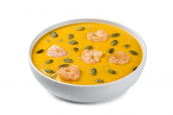 ПРЯНЫЙ КРЕМ-СУП ИЗ ТЫКВЫ С ДОБАВЛЕНИЕМ ОБЖАРЕННЫХ КРЕВЕТОК