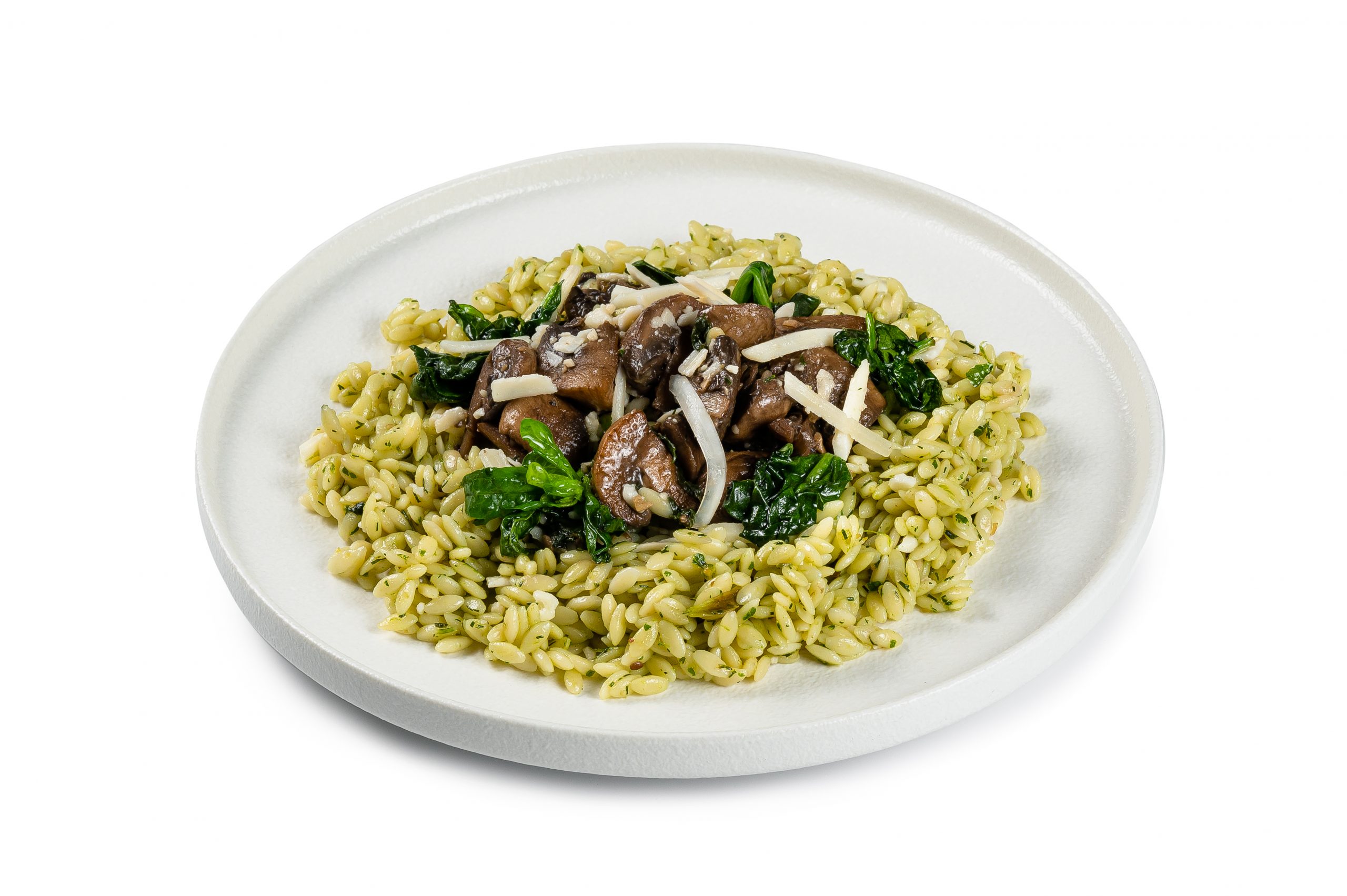 ТРАДИЦИОННАЯ ИТАЛЬЯНСКАЯ ПАСТА ОРЗО С АРОМАТНЫМ ШПИНАТОМ И НЕЖНЫМИ ГРИБАМИ С ДОБАВЛЕНИЕМ ТЕРТОГО СЫРА